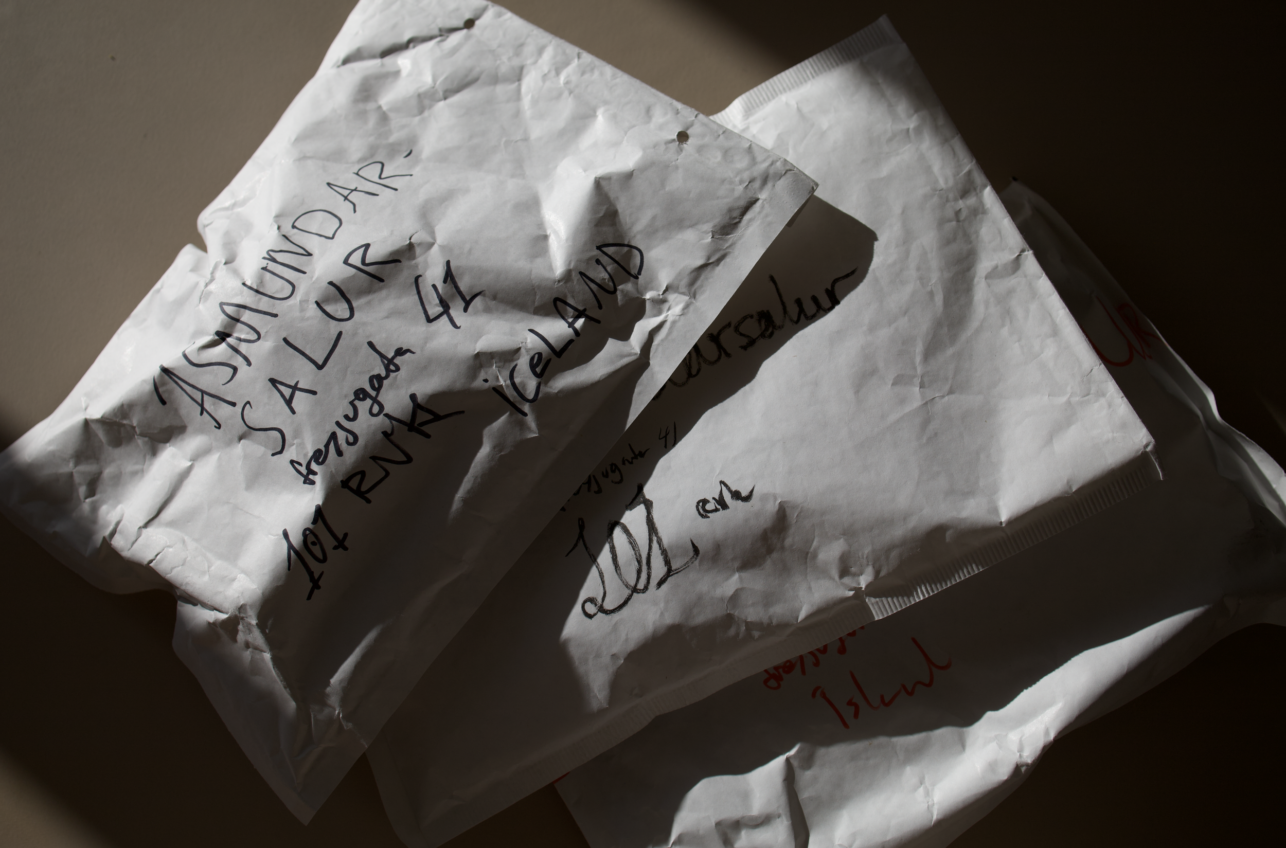 The exhibition is the culmination of a year-long project in which Árni created one artwork per week and sent it from Belgium, where he is based, to Iceland. The works have been on display one by one in the Ásmundarsalur café throughout the year but now come together as a unified whole — a year-long visual diary. Each piece is numbered by week and created within the size constraint of an envelope. Beyond that limitation, every work stands on its own, reflecting the artist’s thought process, emotional state, and passing moments, where new ideas and creative experimentation were given free rein.